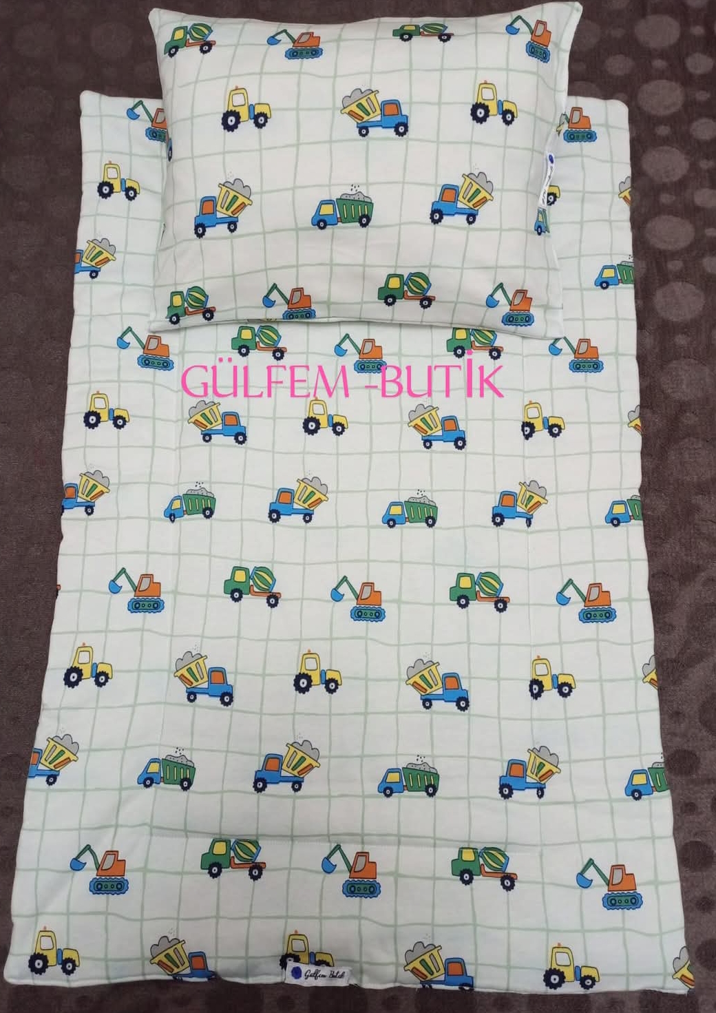 Alt Açma İki kat elyaf dolgulu minder+yastık boncuk elyaf dolgulu 2'li set 0-6ay
