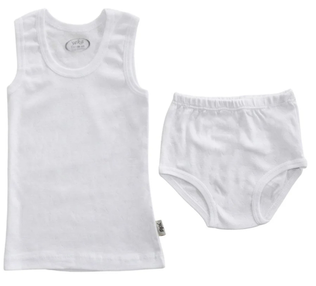 Penye kumaş Beyaz 3-5-7-9-11 aylık Atlet külot takım erkek bebek