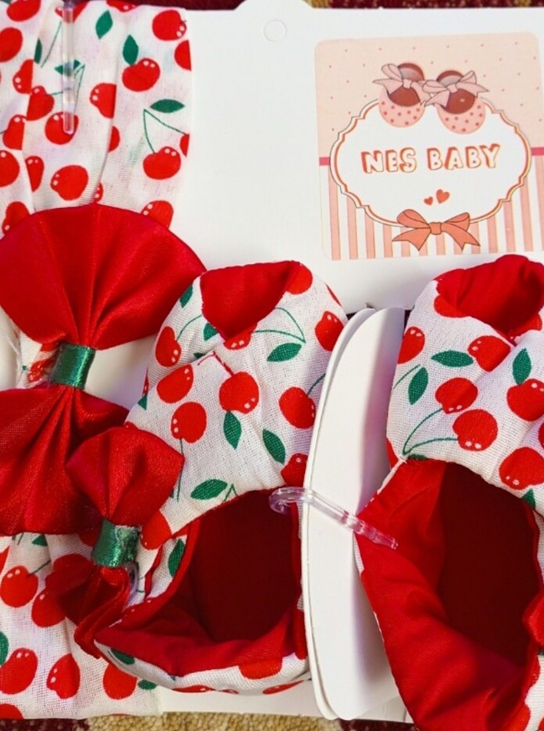 Bandana+patik 2'li set kiraz 🍒 desenli 0-3 aylık