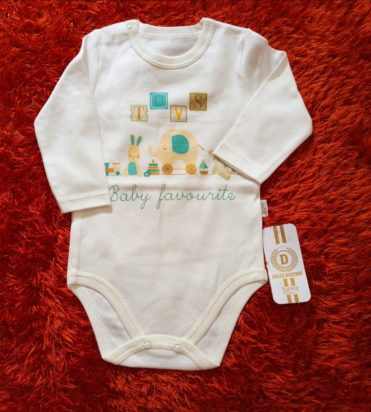 %100 cotton pamuklu penye Krem renk uzun kollu Fil resimli TOYS yazı 9-12/