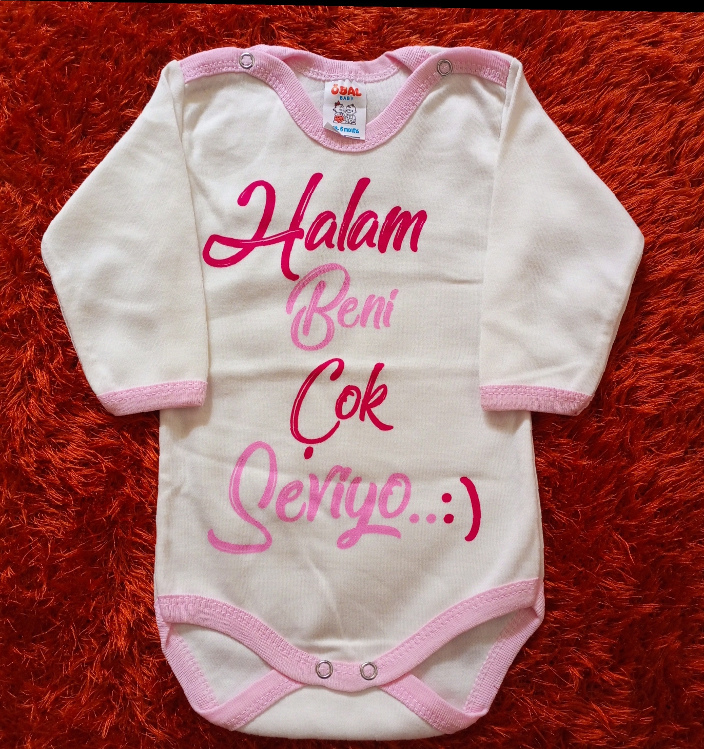 Pamuklu penye uzun kollu Beyaz renk zıbın HALAM BENİ ÇOK SEVİYOR yazılı 6 aylık