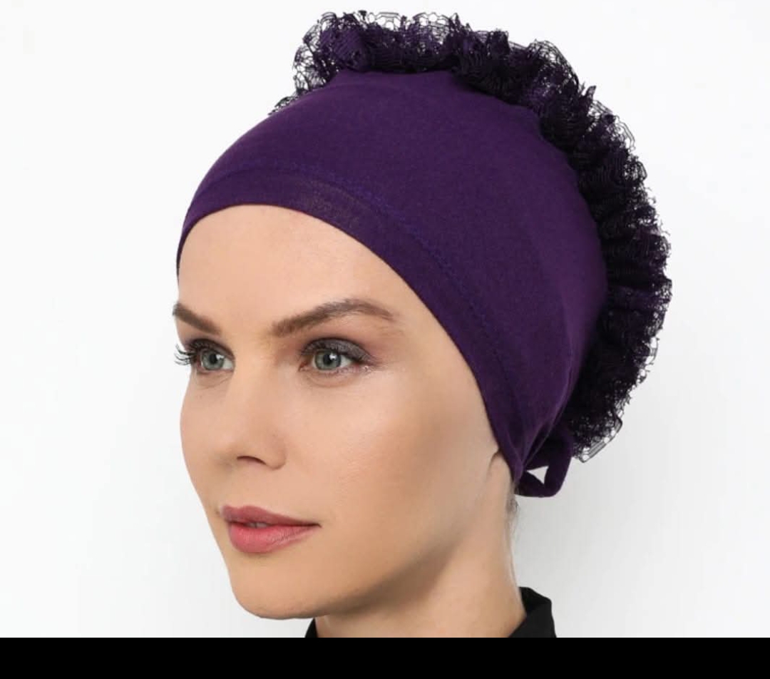 Kadın fırfırlı bone saten topuzlu mor renk