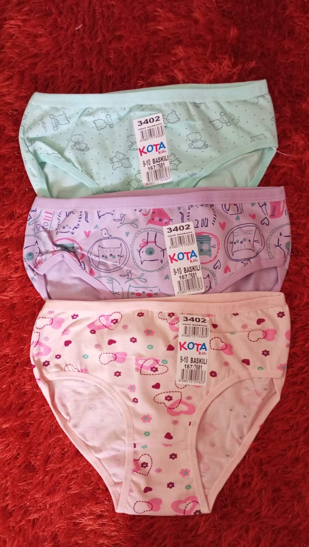 Çocuk kilöt Likralı penye kumaş 3'lü 9/10 yaş