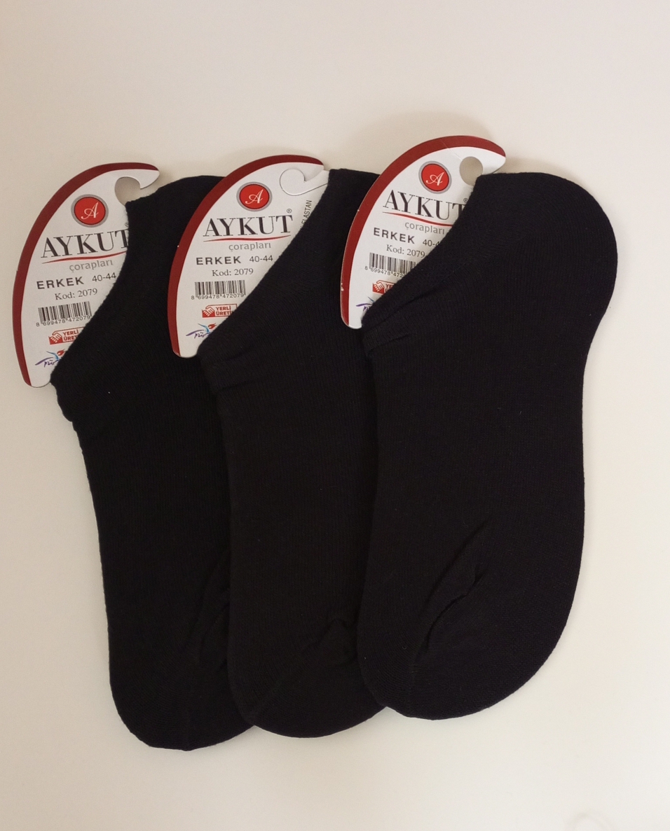 40-44 numara uyumlu erkek patik çorap 3'lü %85 cotton%17 polyamide%3 elastan siyah renk