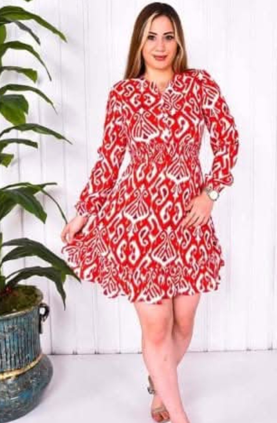 Dokuma viskon kumaş elbise kırmızı 38--44-46 beden