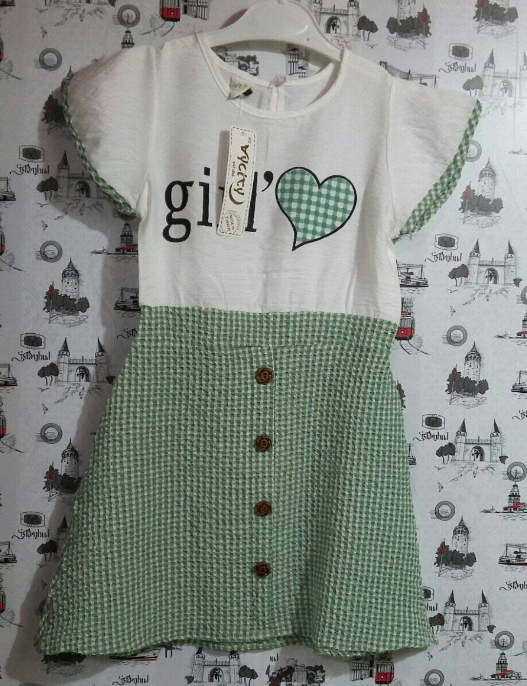 Elbise aerobin kumaş aksesuar düğmeli 6-7 yaş