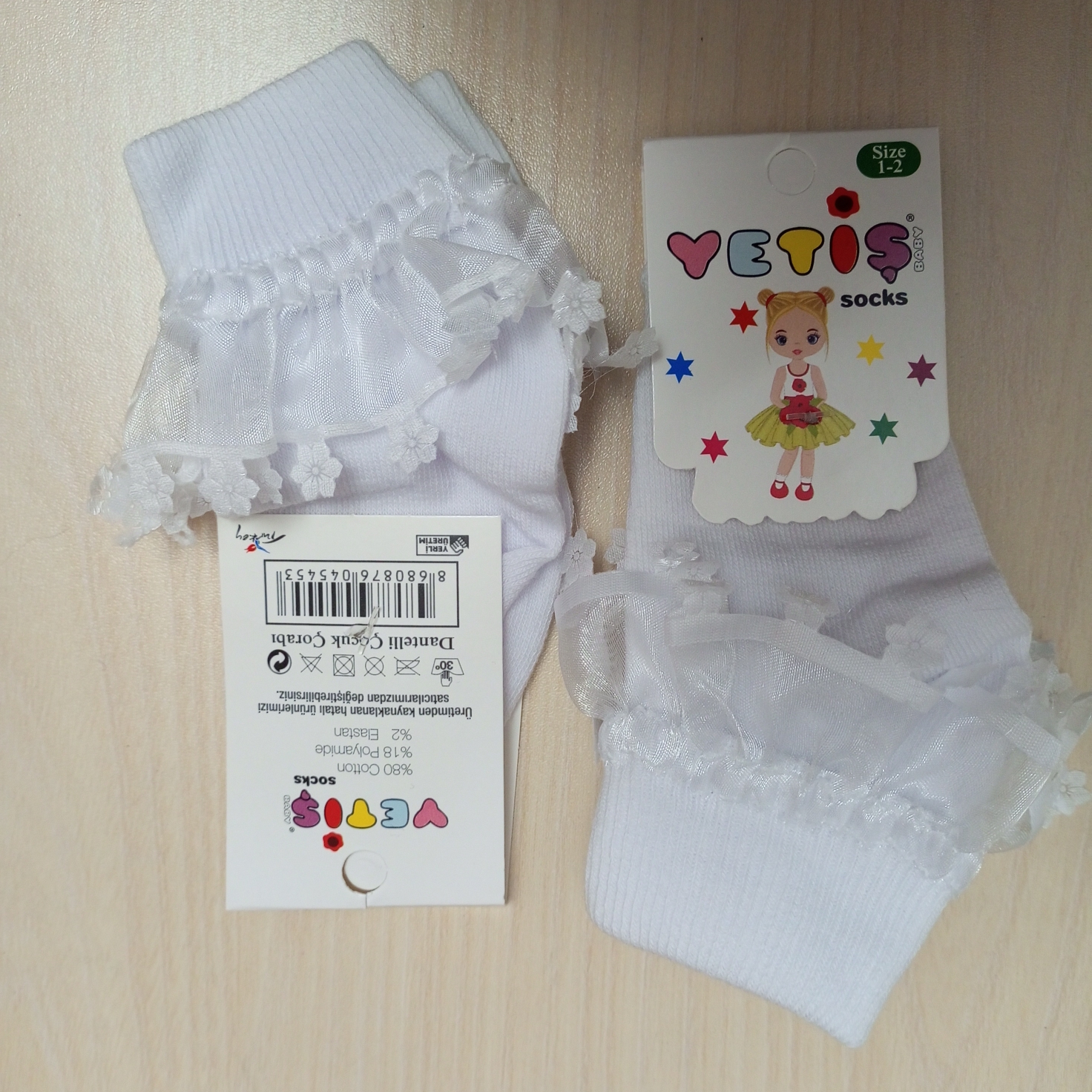 Beyaz fırfırlı çorap 1/2 yaş 2'adet