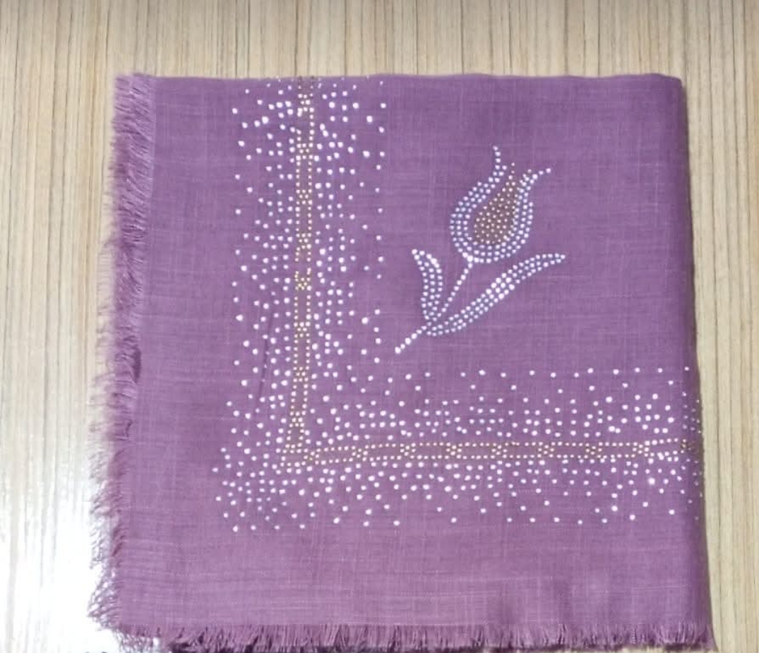 Pamuklu flamlı pul işlemeli eşarp Mor
