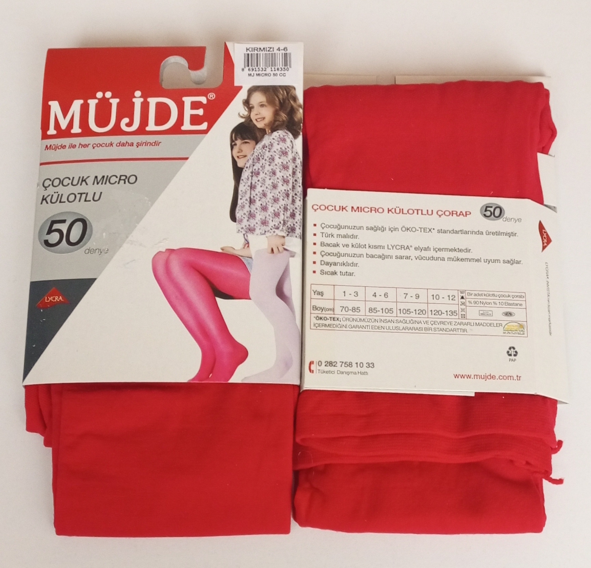 Sade kırmızı MÜJDE 4-6 yaş uyumlu 50 denye Çocuk Mikro kilotlu çorap