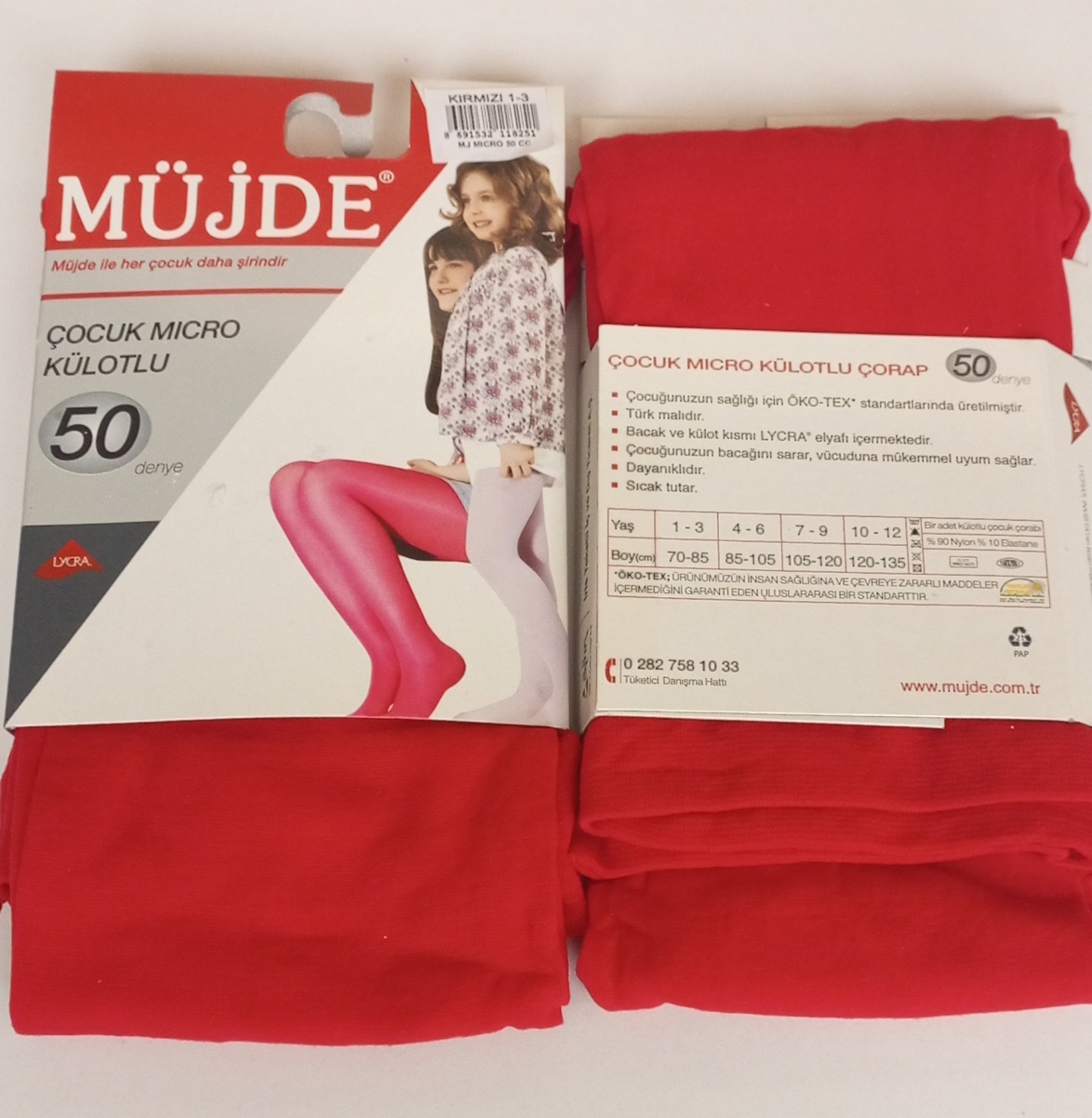 Sade kırmızı Çocuk Mikro kilotlu çorap MÜJDE 50 denye 1-3 yaş uyumlu