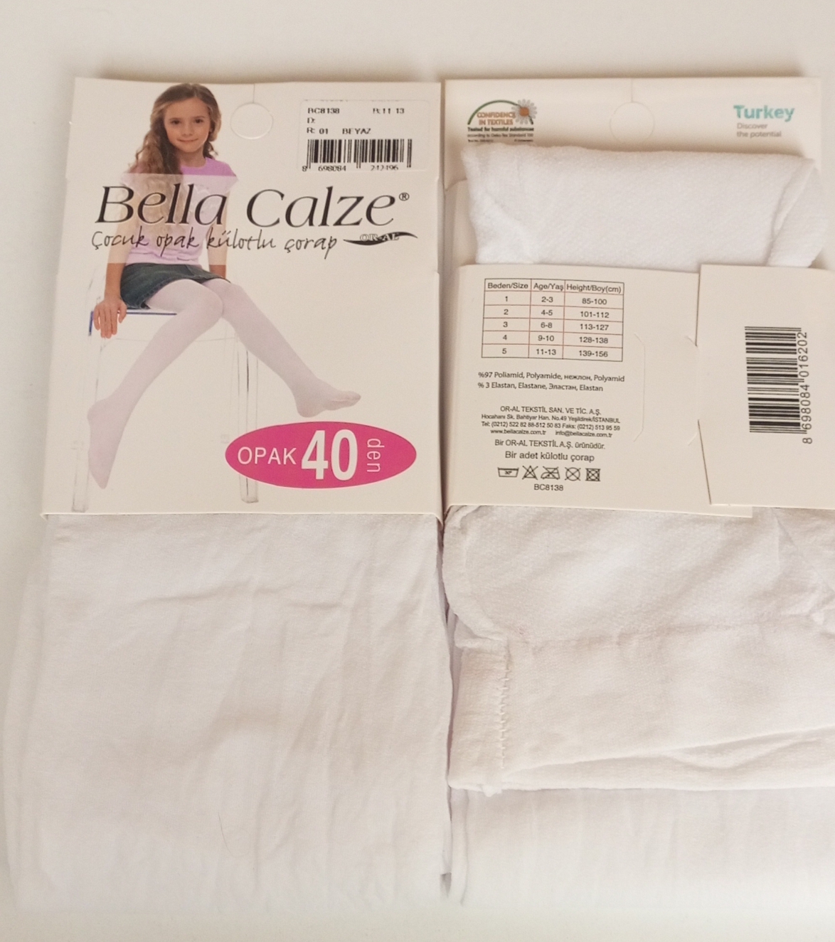 Çocuk Opak kilotlu çorap beyaz 40 den 11-13 arası uyumlu