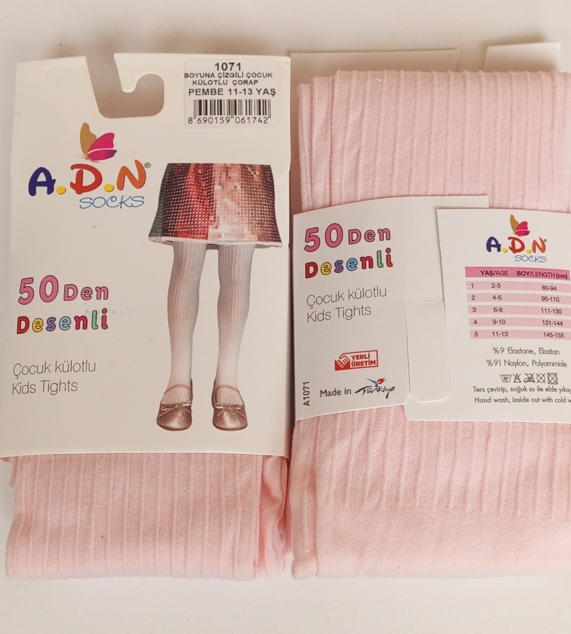 Çocuk çizgi desenli Külotlu çorap 2'li Pembe renk 11-13 yaş arası uyumlu 50 den