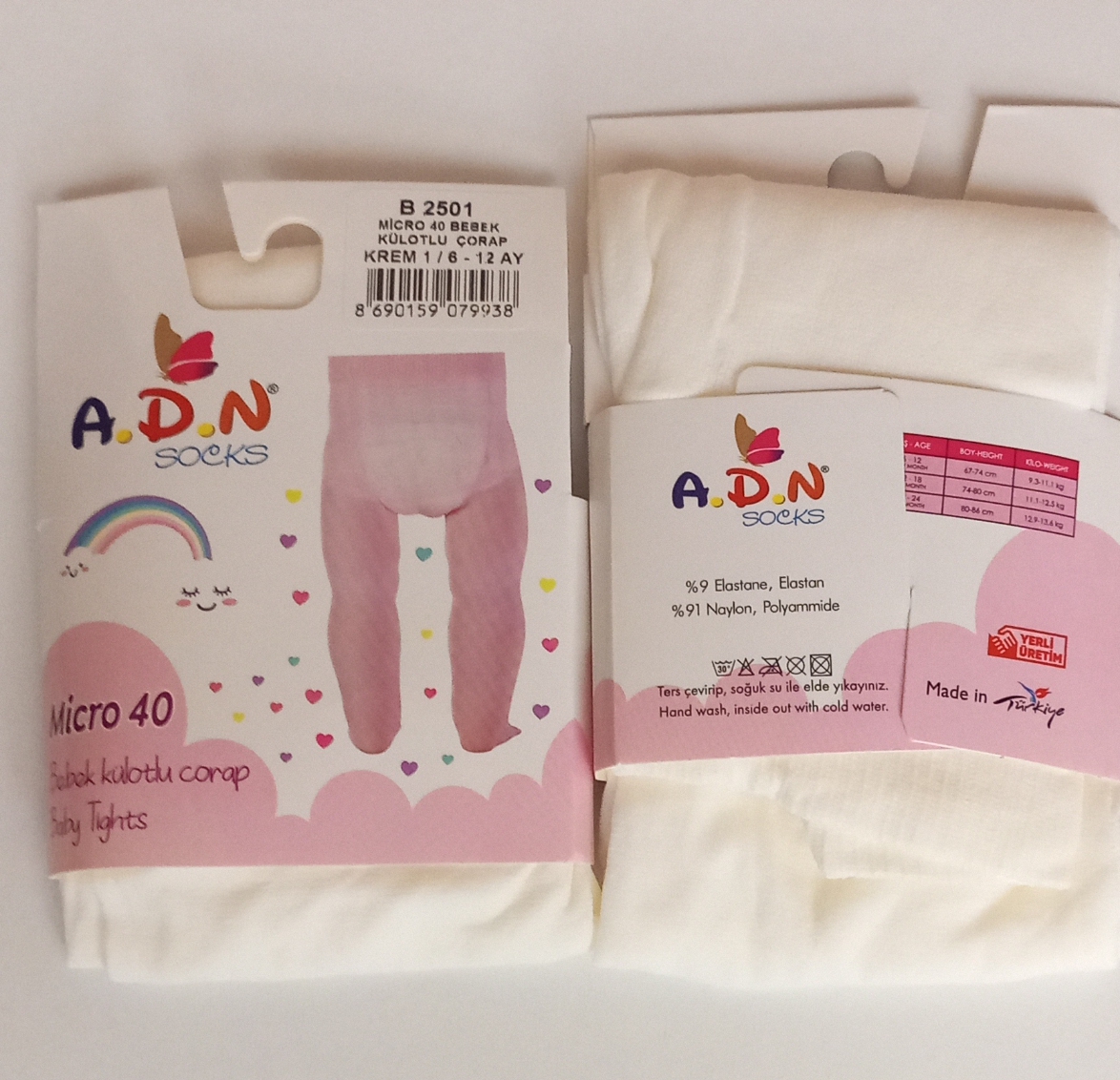 Bebek Kilotlu çorap Mikro 40 Krem rengi 6-12 aylık