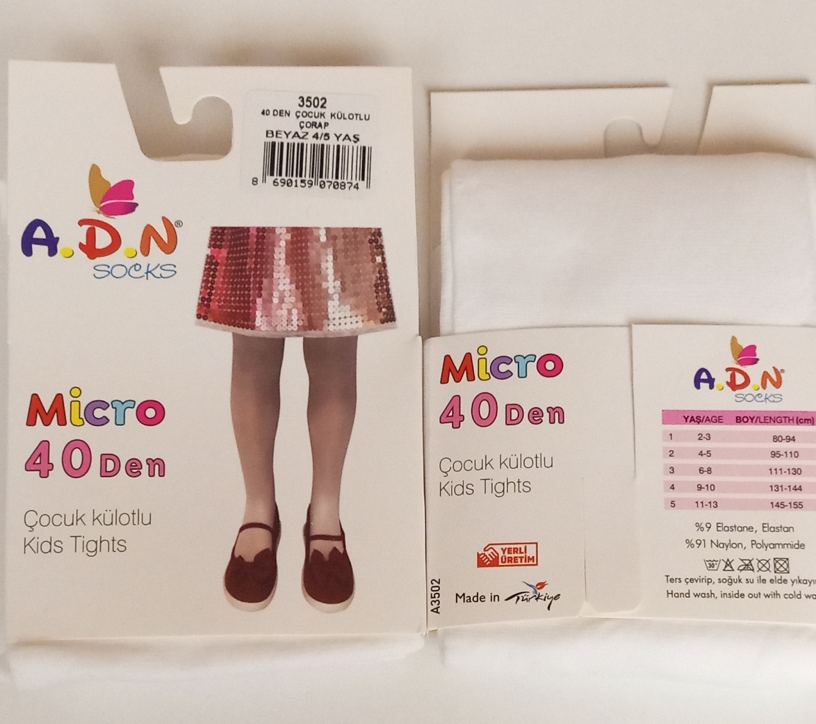 Micro 40 den kilotlu çorap 2'li Beyaz Sade