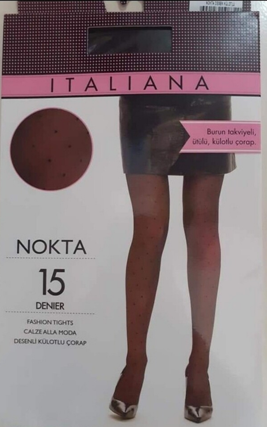 15 den kestane rengi ince kilötlu çorap nokta desenli