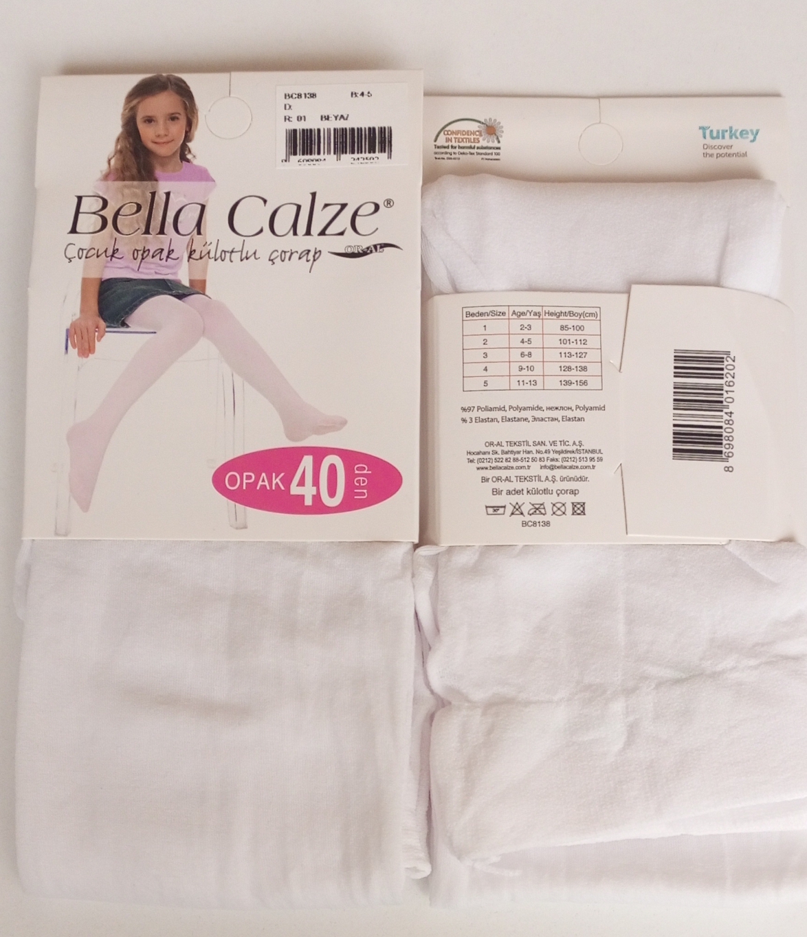 Çocuk Opak kilotlu çorap beyaz 4-5 yaş muz ince