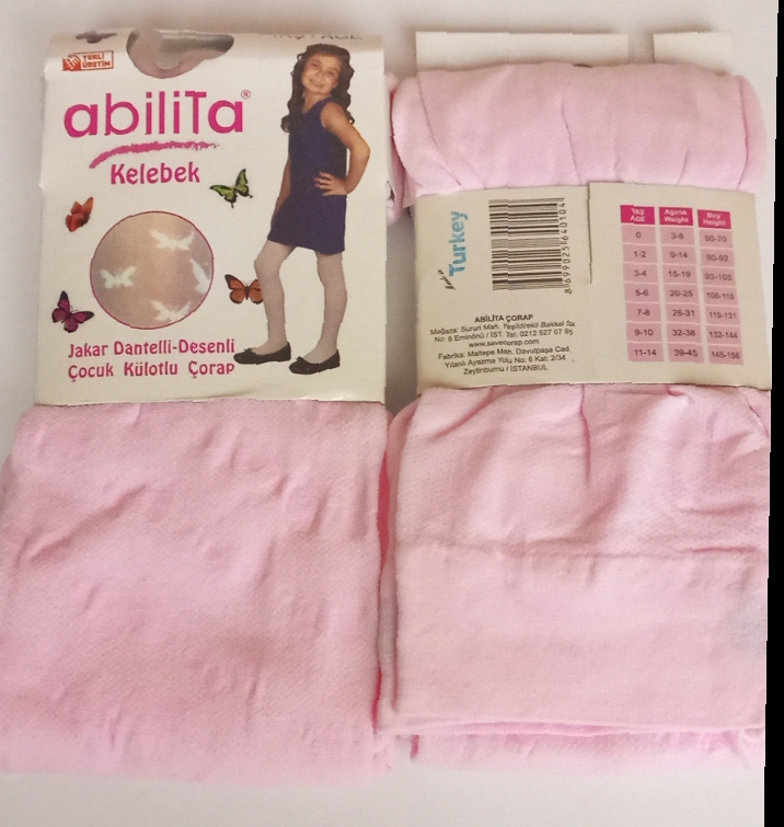 Kelebek desenli külotlu çorap muz pembe renk 9-10 yaş