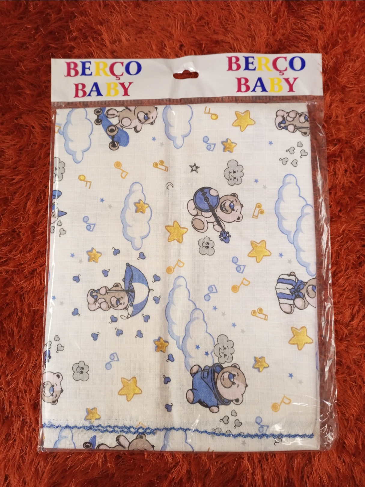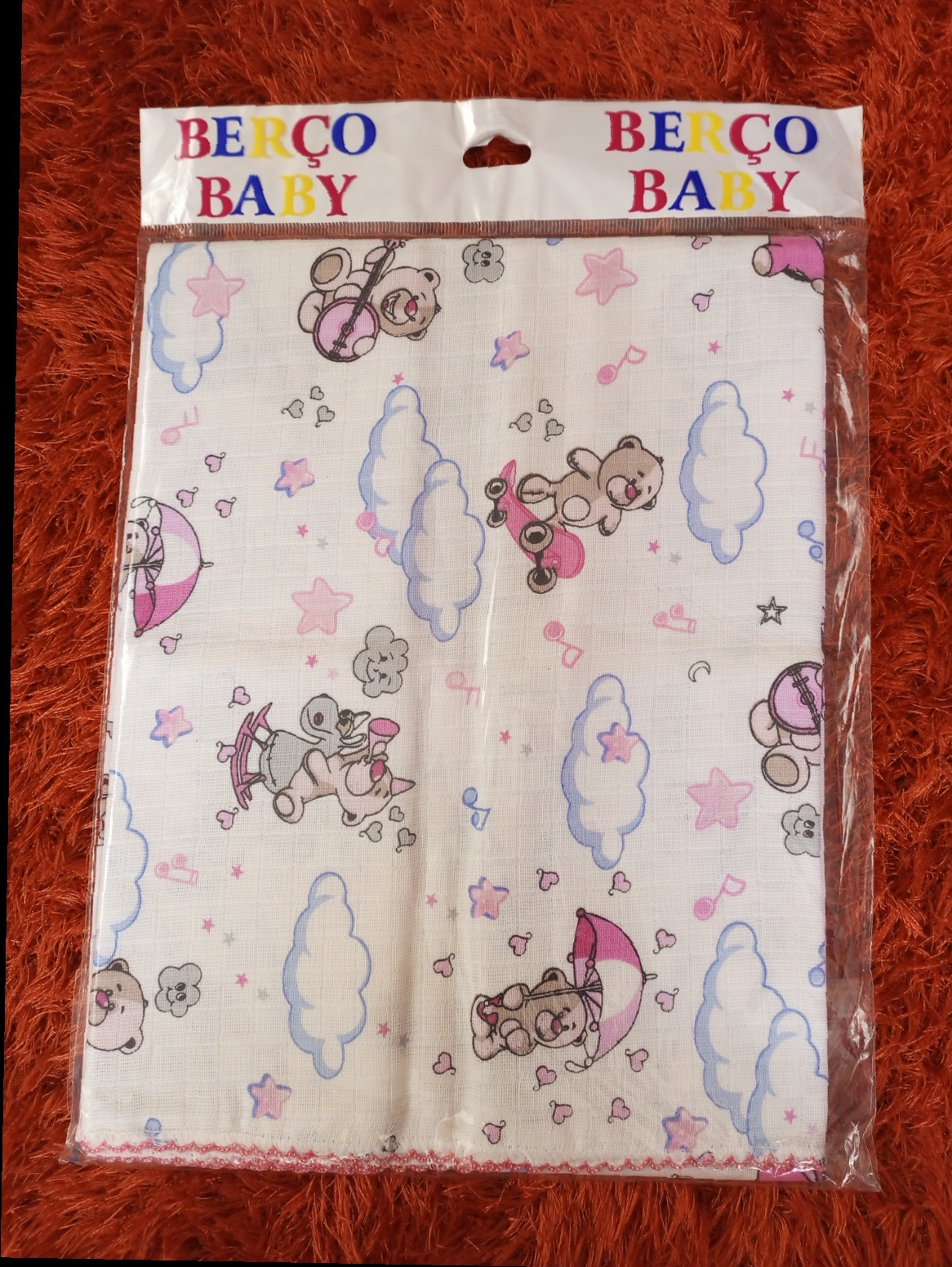 Müslin Battaniye 75*80 cm 🐻 resimli Mavi / Pembe