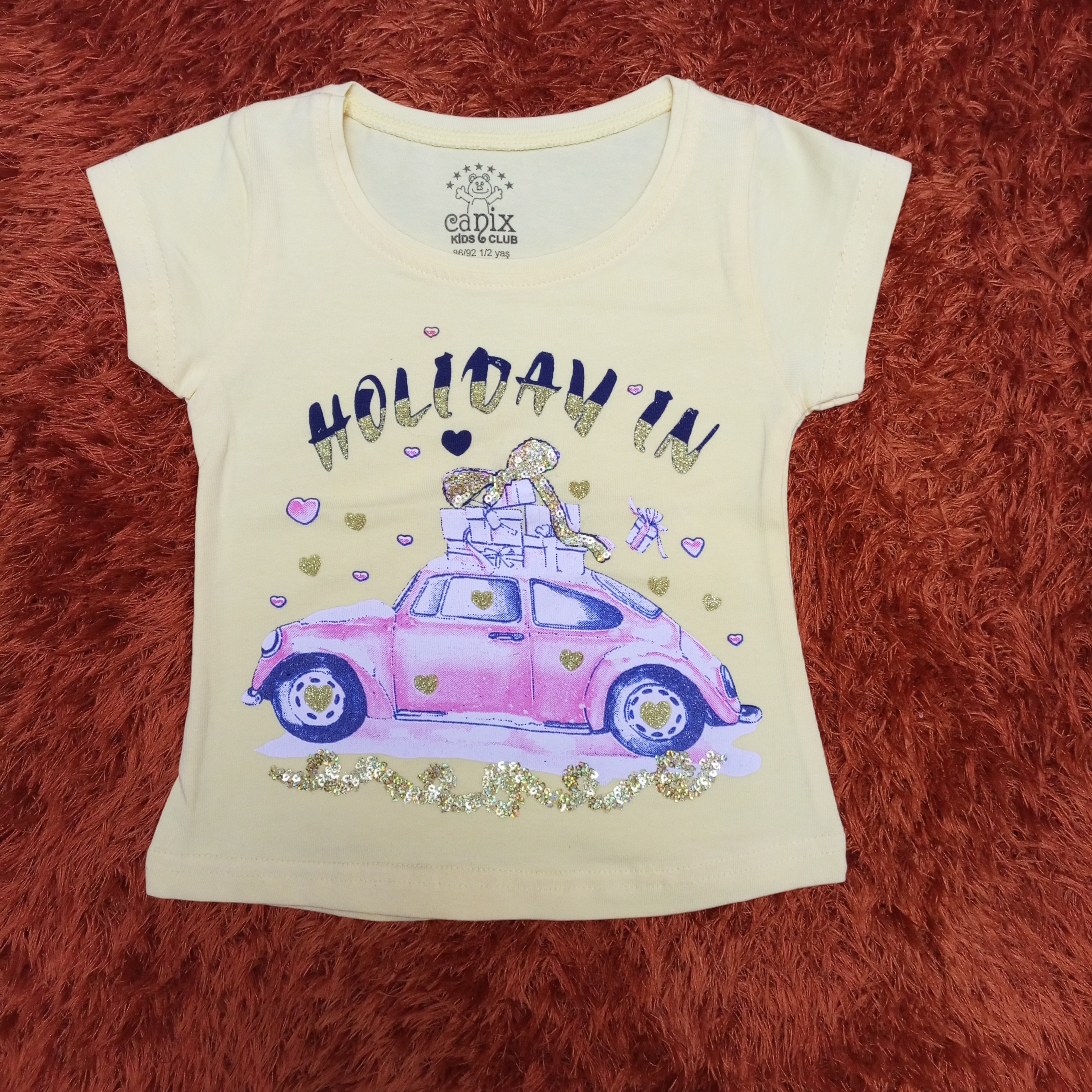 Likralı penye kumaş Sarı renk T-shirt 1/2 yaş