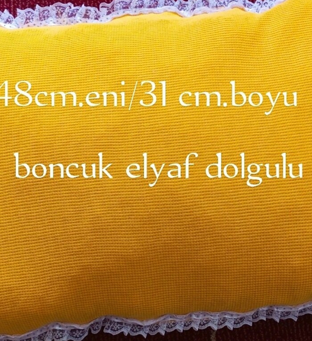 Bebek yastık boncuk elyaf dolgulu vafıl kumaştan ülçü üzerinde yazılı