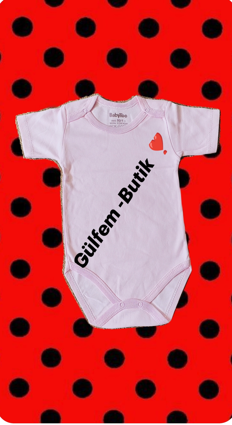 Pamuklu penye kumaş kısa kollu çıtçıtlı body Pembe renk 12-18-24 aylık